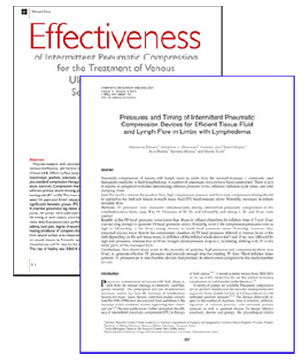 This latest study from the " Vein Magazine, Winter Issue 2012" shows how compression therapy, administered from a Four Chambered Pneumatic Compression Pump & Boot shows that a Lymphedema Pump can reduce the size of wounds with repeated use. The study showed that the Compression Pump group had success in 141 days vs. 211 days for the group with out a pump.