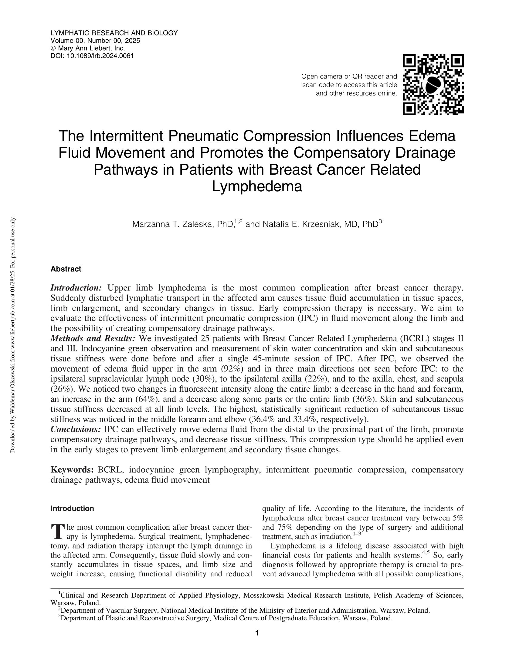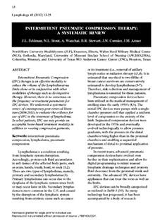 This new study shows that IPC pumps can reduce the edema fluid in the arm, and reduce tissue stiffness. It is recommended that compression should be applied in the early stages of Lymphedema to prevent limb enlargement and secondary tissue changes.