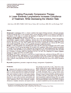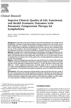 We have been telling patients for years that the use of a Lymphedema Compression Pump decreases the risk of dangerous infections in the leg. Now here is a study from one of our doctors in Pittsburgh PA confirming this fact. This new study published in Lymphatic Research and Biology this year shows a reduction of infections by 32% and a decrease in hospitalizations of 14% "