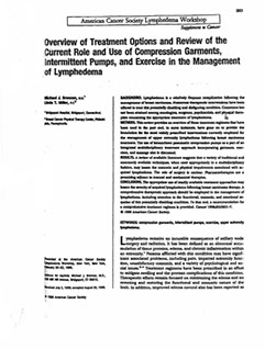This clinical study was co-authored by Linda Miller, PT. She is one of the most experienced Physical Therapist in the Lymphedema filed. In the study, she endorses the idea of a multi-planned approach to dealing with Lymphedema. Compression garments, elevation, exercise, and a lymphedema compression pump. Something that we advise all patients to treat Lymphedema.